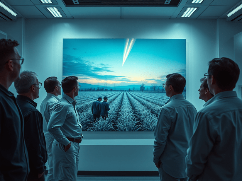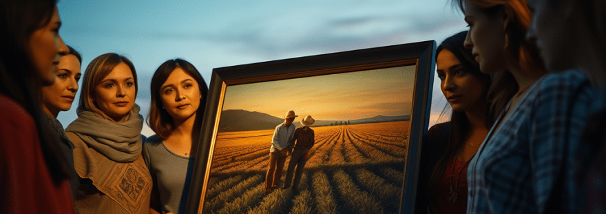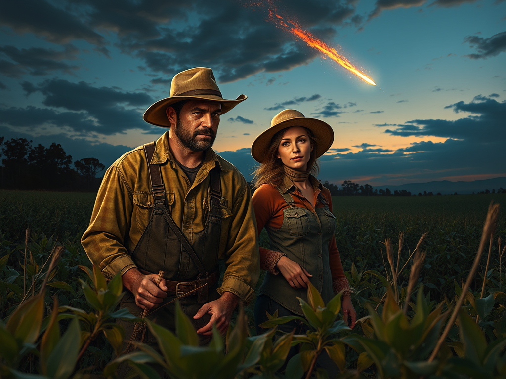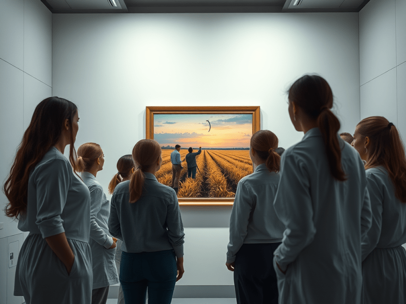 For this purpose, ten individuals will visually analyze a painting depicting two agricultural workers engrossed in inspecting crops under a dusk sky, unaware of a meteor streaking above them.